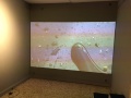 « 11752 mètres et des poussières… » est une film de 71 minutes suivant obstinément une goutte d’eau. L’origine, la vie, la fin d’une goutte. Filmée en macro, elle glisse longuement sur une surface dont on ne distingue ni les bords, ni la pente ni la nature. Le point de vue est à son angle mort. L’infinie glissade de la goutte est réalisée grâce à un outil qui lui fait faire du surplace. C’est la surface qui remonte à contresens de sa descente. Le filmage en course poursuite s’apparente aux techniques de documentaire animalier sauvage. Le film a été réalisé sur le toit du château d’eau de Décines-Charpieu. La bande son est l’environnement direct et sans retouche du tournage : vent, cloches d’églises, chien qui aboie…