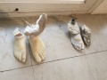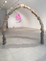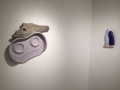 Enfin au deuxième et dernier étage, les artistes ont choisi d’enlever le systeme d’éclairage et de laisser cette salle en voute baignée dans sa lumière naturelle. Accentuant l’ ambiance atypique de cet espace, perché, intemporel, rêveur, entre plusieurs lieux, Sanchez&Croze associent plusieurs états , formes et gestes à partir du vocabulaire premier originel de leur pratique. C’est un carnet de notes de formes composites, d’objets trouvés, élimés, de gestes réactivés, de protocoles et de formules, d’attentions distraites, de tests. On pourrait avoir un doute sur le fait que cela précède ou succède l’exposition. L’ensemble décrit des micro-affiliations, des rebonds visuels et des échos plastiques, de la singularité d’une texture à la mécanique d’une opération, de l’ occurence d’une couleur à la précision d’une répétition. Elle mesure les minces écarts entre des plasticités, des modes d’apparition, des associations physiques, des règles de tenue, des verticalités et horizontalités…L’installation peut se lire comme un atelier, cet endroit singulier, autant physique que mental, où les formes tiennent en suspension entre leur potentiel devenir et leur reste tangible.A mi chemin entre les « Sculptural Studies » et « l’autre » , c’est un espace d’étude, une page remplie d’annotations, de figures, de ponctuations qui décrivent avec précision leur « faire », leur monde.