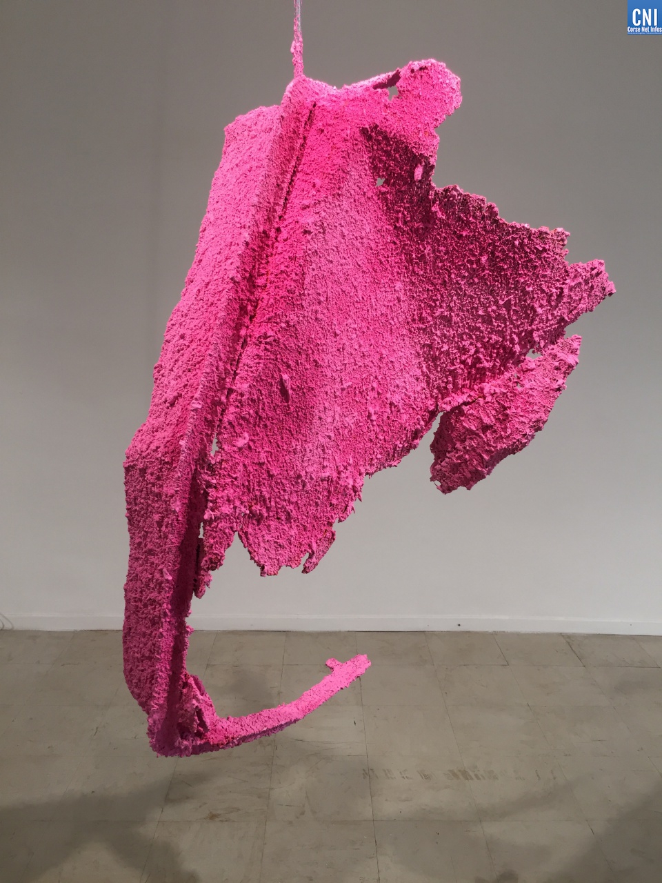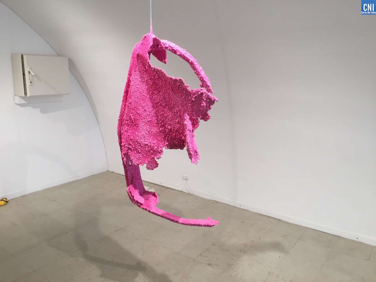 «L’exposition présente des pièces issues de travaux récents et une pièce créée spécifiquement pour l’événement, autour de la plage de Nonza » souligne Juana Macari, la directrice du centre culturel.