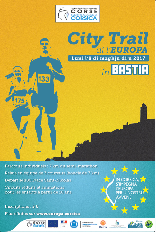 C’est dans ce contexte que la Collectivité Territoriale de Corse organise cette année, par un vaste partenariat, un city-trail di l’Europa, en partenariat avec la Communauté d’Agglomération et la mairie de Bastia, l’Athlétic Jeunes Bastia, le CAB Athlétisme, l’Associu Mantinum et l’autoentreprise Marie-Paule Mancini-Neri est l’occasion de présenter les institutions européennes de façon ludique aux jeunes corses.