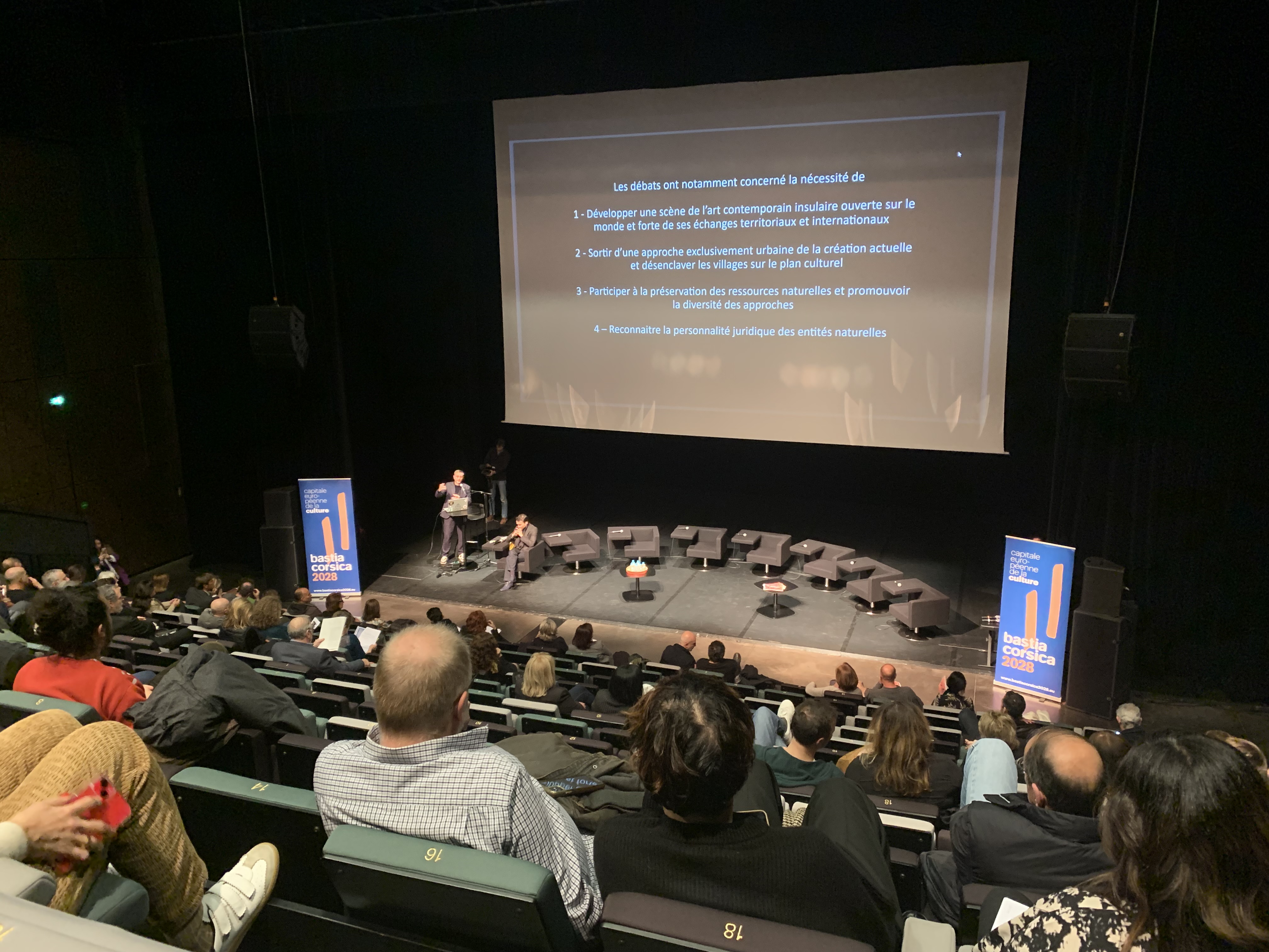 La société civile apporte elle aussi sa pierre à l’édifice via le CESEC, Conseil Economique Social, Environnemental et Culturel de la Corse. « Le CESEC a adhéré avec enthousiasme au projet » déclare Marie-Jeanne Nicoli, sa présidente. « La méthode utilisée est importante car outil de mobilisation de l’ensemble des acteurs de la société. On considère que c’est déjà une réussite dans le domaine des rencontres, des échanges, de la mutualisation des talents. Autre point essentiel : on remet au centre du développement de l’île, l’art et la culture. Ce sont en effet des leviers importants du développement d’un territoire, cela favorise la cohésion sociale, c’est une passerelle intergénérationnelle. La culture peut même proposer des chemins inédits. C’est une formidable aventure ».