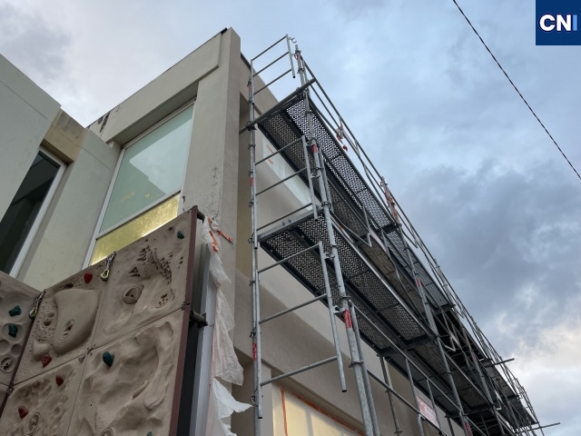 Les travaux, réalisés sur deux phases, visent à rendre le complexe conforme aux normes de sécurité et d’accessibilité. La phase 1, actuellement en cours, comprend plusieurs opérations importantes : la couverture d’un terrain extérieur homologué (handball, basketball, futsal), la création d’un mur d’escalade de 70 m², la rénovation de la toiture du 2e étage et l’aménagement de nouvelles infrastructures, comme une buvette extérieure et un bureau d’accueil.