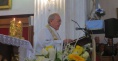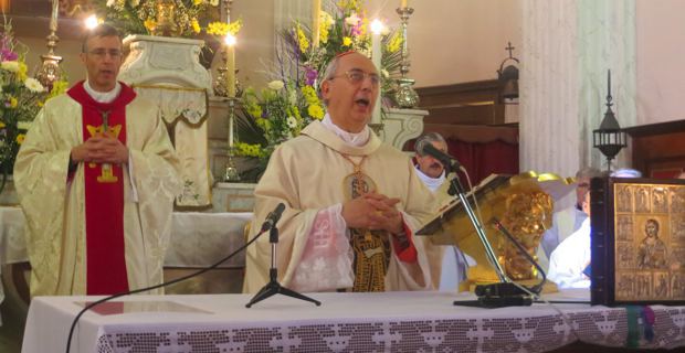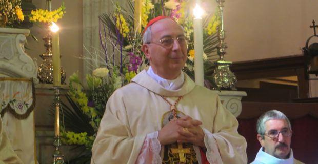 Précisant que « Saint Joseph est une grande fête, non seulement pour la ville de Bastia, mais aussi pour l’Eglise universelle », il rend hommage au Saint patron, époux de la Vierge Marie, dont les attributs sont « le silence et l’action, la vocation cachée dans le mystère de Dieu » et sa mission : « être koustos, gardien de Jésus et de Marie ». Il explique que le pape François voue « une dévotion particulière à Saint Joseph. Il garde sur la commode de sa chambre une statue du saint endormi sous laquelle il glisse ses intentions de prière… cela prouve toute la confiance du Saint père dans l’intercession de Saint Joseph... Sa première homélie de son ministère pastoral eut lieu le jour de la Saint Joseph ». Le Cardinal Mamberti voit, dans le Saint patron de la ville de Bastia, « le modèle de l’éducateur et du père, celui qui a gardé le mystère de la paternité ». Il donne, ensuite, lui-même la communion aux fidèles qui affluent vers lui. La messe terminée, le Cardinal rejoint, derrière l’église, la maison de l’archiconfrérie, où Fanfan Dal Coletto, qui en fut pendant 30 ans le prieur, lui remet, après un long préambule, la médaille des confrères.