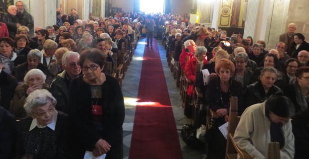 La célébration a débuté, comme à son ordinaire, par une messe in lingua nustrale, chantée par les confrères venus de toute la microrégion. Après la traditionnelle intronisation de nouveaux membres dans l’archiconfrérie de Saint Joseph, la messe solennelle a été célébrée par le Cardinal Mamberti, assisté de Mgr De Germay, évêque de Corse, et de nombreux prêtres des paroisses bastiaises et environnantes. « Nous tenons à exprimer toute la joie de l’Eglise de Corse de vous recevoir pour la célébration de Saint-Joseph », assure, d’emblée, le chanoine Francis Grisoni au prélat corse. « C’est une grande joie et une grande émotion, pour moi, de venir en Corse retrouver les racines, qui sont les miennes et auxquelles je suis très attaché, même si le service de l’Eglise m’entraîne vers d’autres destinations », répond le Cardinal Mamberti, visiblement ravi et ému.