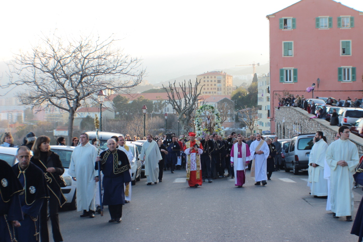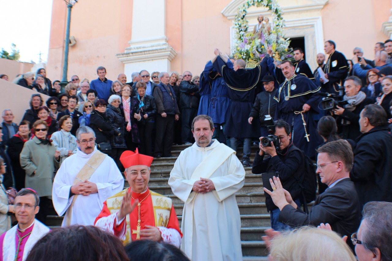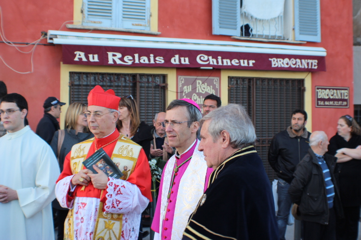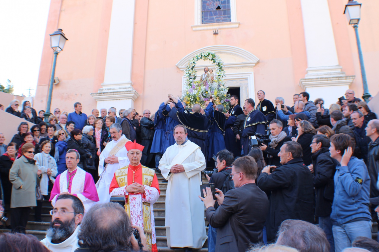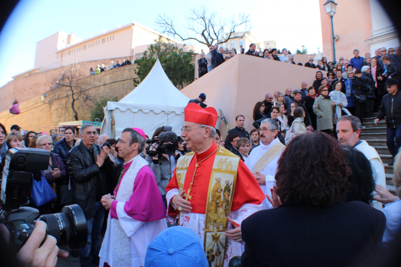 La précédente visite d’un cardinal à Bastia date de 1955, quand le cardinal Roncaglia est venu sur la Place Saint-Nicolas fêter Notre Dame du Grand Retour. Peu de temps après, il devient le pape Jean XXIII. C’est dire si la venue d’un cardinal, et qui plus est d’un cardinal corse, d’un enfant de l’île, originaire de Vico, est déjà en soi un événement ! Que ce cardinal choisisse la fête la plus populaire de Bastia, A San Ghjisè, comme le jour d’avant il avait choisi A Madunuccia à Ajaccio, et l’événement s’empreint d’une dimension et d’un symbolisme particuliers. Les Bastiais se sont, donc, pressés, en nombre pour célébrer leur saint patron, et, campagne électorale oblige, à trois jours du 1er tour des élections départementales, les élus politiques et les candidats aussi !
