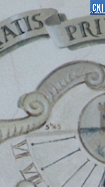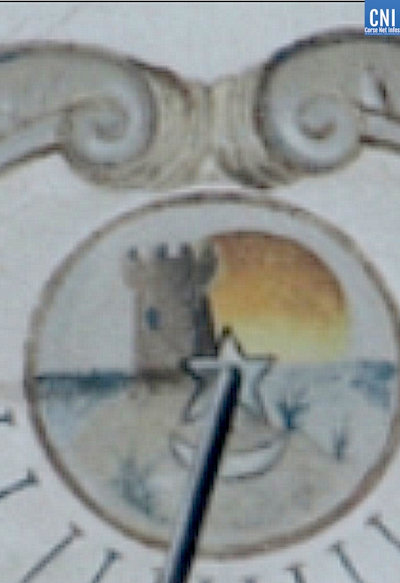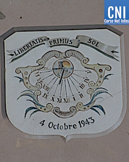 On voit aussi un cadran solaire qui marque 5h45 soit l'heure de la libération de Bastia."