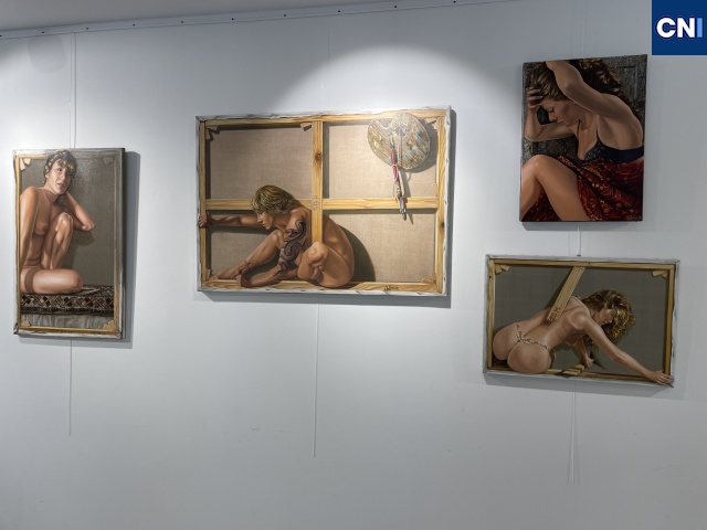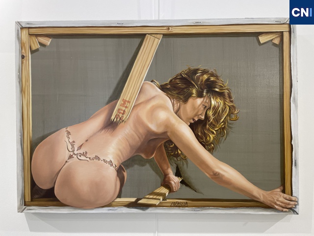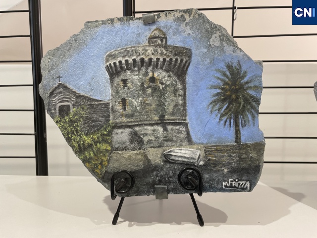 Une partie de son univers, superbement mis en valeur à l’Appuntu*. « Le thème de cette exposition est Les femmes et des tours, les tours génoises qui sont très spécifiques à la Corse. Il y en aurait 83, j’en ai peint sur lauzes une dizaine. J’y présente aussi les femmes car j’aime la peau, les corps. Je fais venir des modèles mais parfois je les transforme un peu. En Corse, on rencontre le problème de la pudeur, certains modèles hésitent à se mettre nue ». Elsa, Caroline et Martine elle-même apparaissent cependant dans toute la beauté de leur corps. Côté technique, Martine Frizza a adopté celle dite hollandaise. « Je travaille d’abord à l’acrylique et ensuite je fais des couches. C’est une technique assez exigeante parce qu’on ne peut pas revenir en arrière ». En admirant ces tours et ces femmes, on ne peut aussi que s’émerveiller des couleurs. « J’aime beaucoup les couleurs. Je les travaille ». Une exposition qui vaut vraiment le… détour.