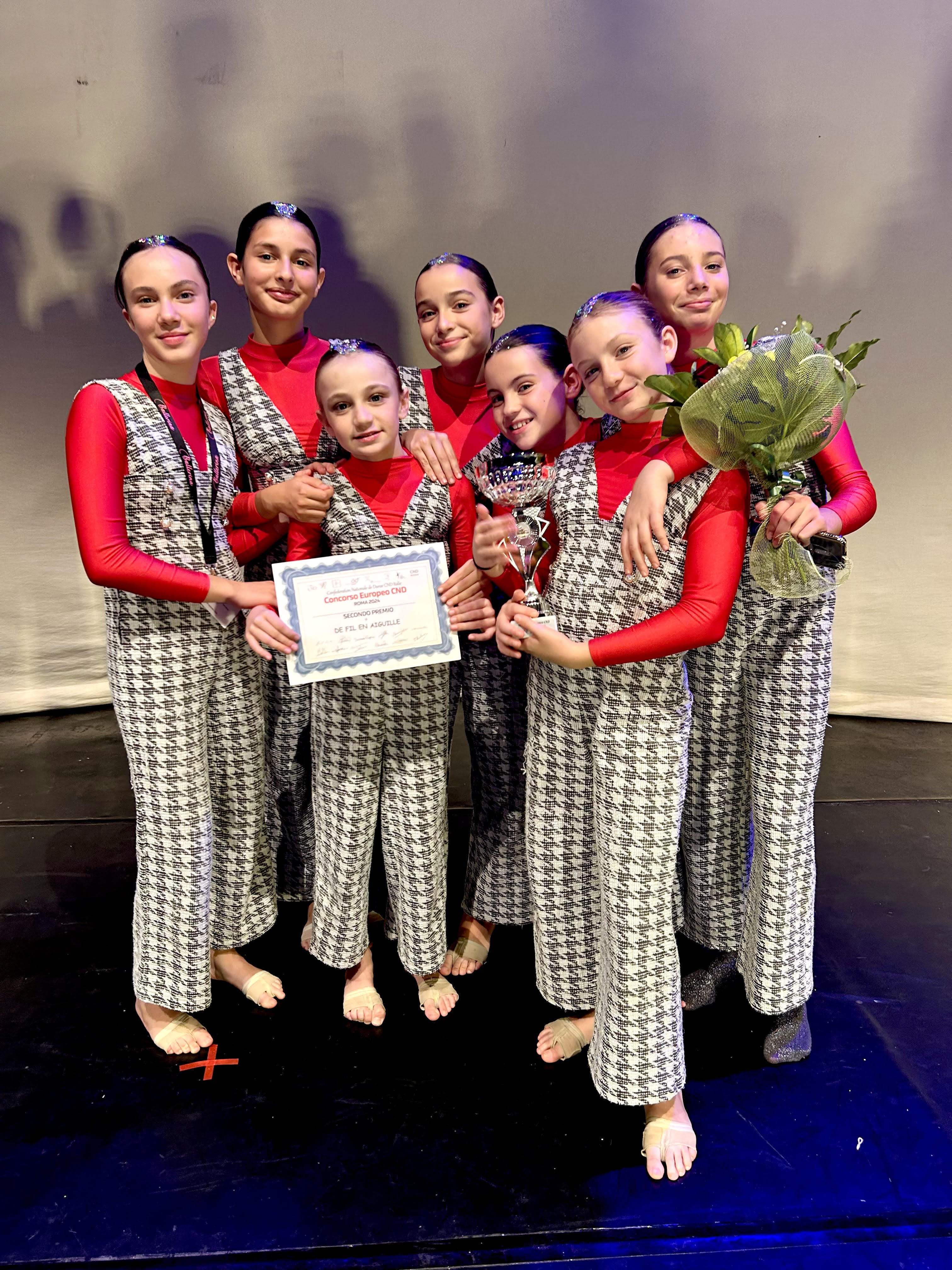 Sur les cinq passages présentés à Rome, l'école Ballerina a obtenu cinq podiums. Le groupe pré-professionnel catégorie 1 (13-15 ans), avec sa chorégraphie Brainstorming, a remporté la première place européenne avec une note parfaite de 20/20. Ce groupe s'est distingué dans un environnement particulièrement compétitif, où chaque détail compte. De même, le duo pré-professionnel Le Tailleur, dans la catégorie 16-18 ans, a également décroché la première place avec une note équivalente de 20/20.