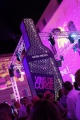 Ce qui frappe immédiatement à l’intérieur c’est la présence cette année d’une structure en forme de bouteille juste devant la scène, installée pour l’occasion par la société Gérin Frères. Une structure en aluminium thermolaqué, soudée par le procédé TIG – procédé de soudage à l'arc avec une électrode non fusible. Impressionnante, elle mesure 4m50 de hauteur et 1m30 de largeur. Elle est rétro éclairée par des LED.
