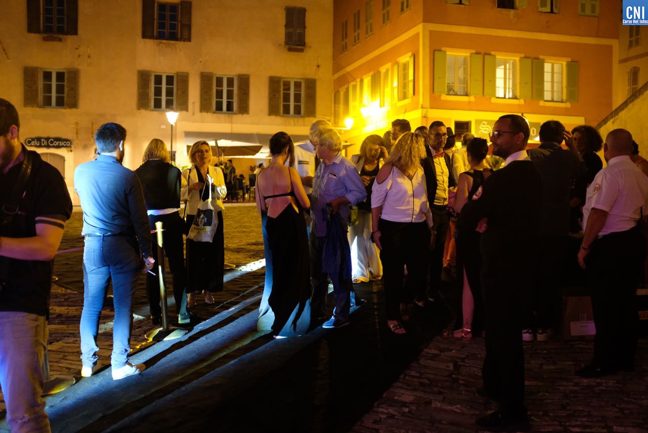 Idéalement installé dans la cour des Palais des Gouverneurs à Bastia, il faut tout d’abord montrer patte blanche à l’entrée pour y accéder, et choisir sa file : à gauche les flash codes qui tiennent lieu de billet, à droite un simple panneau intitulé « vignerons » permettant d’accéder grâce aux invitations des participants de la soirée.