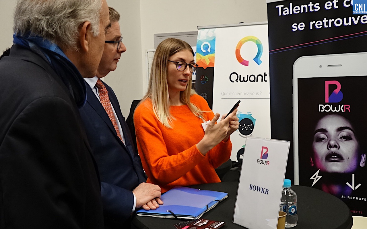 Sur place, dans un espace qui s'est vite avéré exigu mais qui avait l'avantage de se dérouler à Bastia au lieu de La Marana, outre les entreprises traditionnelles de l'hôtellerie, de la restauration, de la police, de la gendarmerie et de l'armée - de terre et de l'air - on a enregistré, signe de l'amélioration évoquée plus haut, le retour des entreprises du bâtiment mais surtout noté, signe des temps, l'arrivée des start-ups corses : Volyp, Qwant, Bowkr, Communiti mais aussi l'incubateur territorial, Inizia, Fab Lab Corti etc..