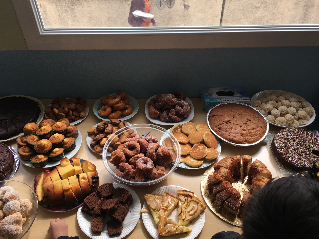 Les parents ont eux aussi participé en apportant le goûter de 10h. Des spécialités du monde entier se sont alors retrouvées sur la table : fiadone et panettes aux côtés de monteçao, de cornes de gazelle ou de boules de soja. « Ce sont nos panzarotti à nous », explique un papa vietnamien à une maman marocaine…