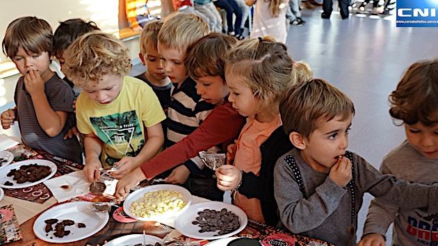 Mais plus que les propos éducatifs - qui resteront sans doute gravés dans la mémoire de tous ces enfants - c'est l'heure de la dégustation de tous ces chocolats noirs, blancs et au lait et de ces pâtes à tartiner bio à base de noisettes nustrale, ou bien encore de ces sucettes ou ces canistrelli au chocolat qui ont ravi les petits écoliers du Centre.
