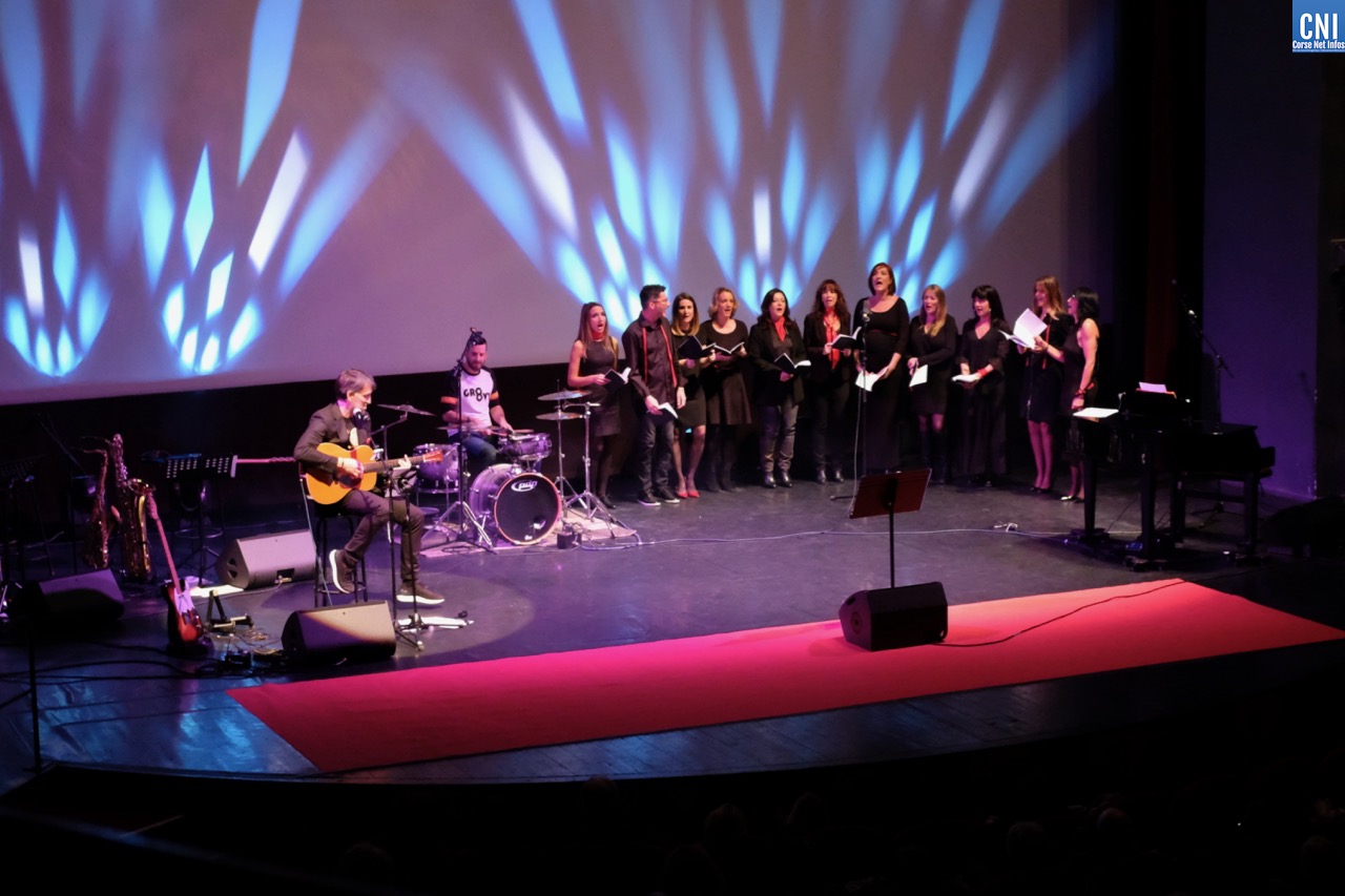 C’est par le désormais traditionnel concert, vers 20h15, que commence la soirée de clôture de cette 31e édition du Festival du cinéma italien de Bastia. Thomas Bronzini, accompagné de ses habituels acolytes – Eric Salvarelli à la guitare et Pierre Rebouleau au piano – entame un série de chants italiens, comme le fameux Vivo per Lei qu’il interprète en duo avec Amelia de la chorale des Fous Chantants, également présents sur scène. La Fiera del Est et le traditionnel Bella Ciao finissent de chauffer le public qui reprend en chœur les paroles et applaudi à tout rompre.