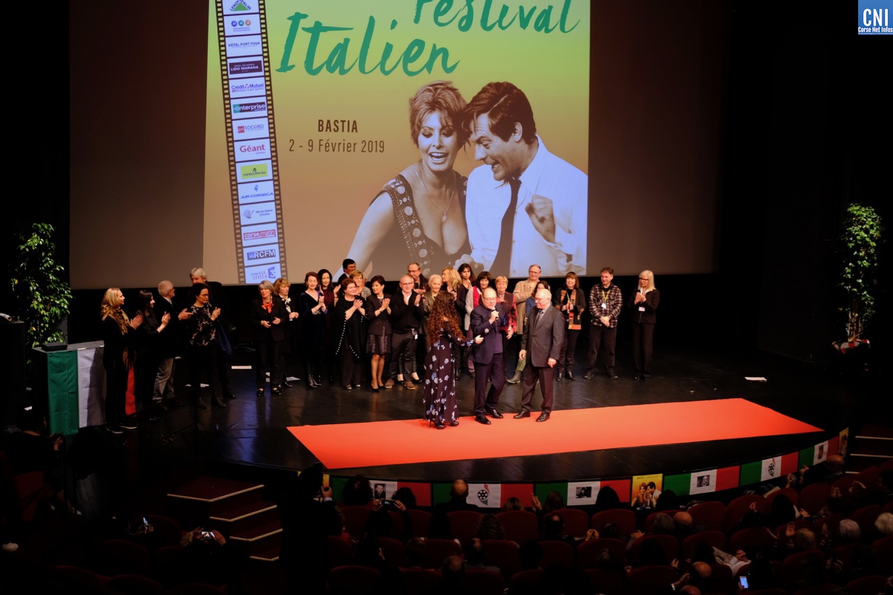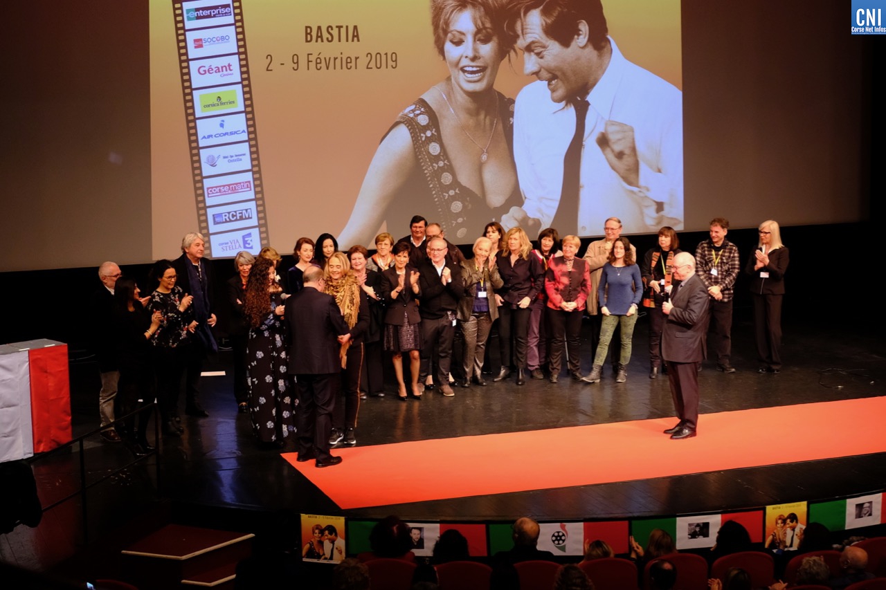 Jean-Baptiste Croce insiste également sur le record de fréquentation qui vient d’être battu et qui place Bastia comme le 2e Festival de cinéma Italien en France devant Annecy et derrière Villerupt. Toute l’équipe de bénévoles et professionnels de la manifestation sont présents sur scène pour célébrer ce moment d’émotion avec Michèle de Bernardi, la fille de René Viale et directrice du cinéma le Studio, très émue. Batti Croce a tenu à leur présence à tous parce qu’ils sont « ceux qui travaillent dans l’ombre, qu’on ne voit jamais mais sans qui le festival n’existerait pas. »
