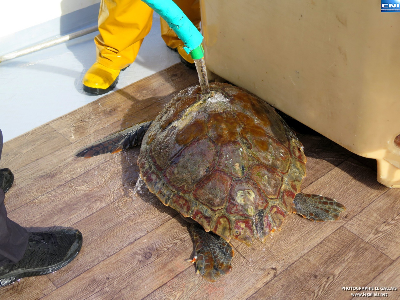 La semaine dernière un pêcheur professionnel éco responsable, Sébastien Rialland en l'occurrence, en a croisé deux qui étaient blessées, il les a prises à bord et, le temps de les rapatrier à terre, installées en vivier suivant un protocole bien établi.