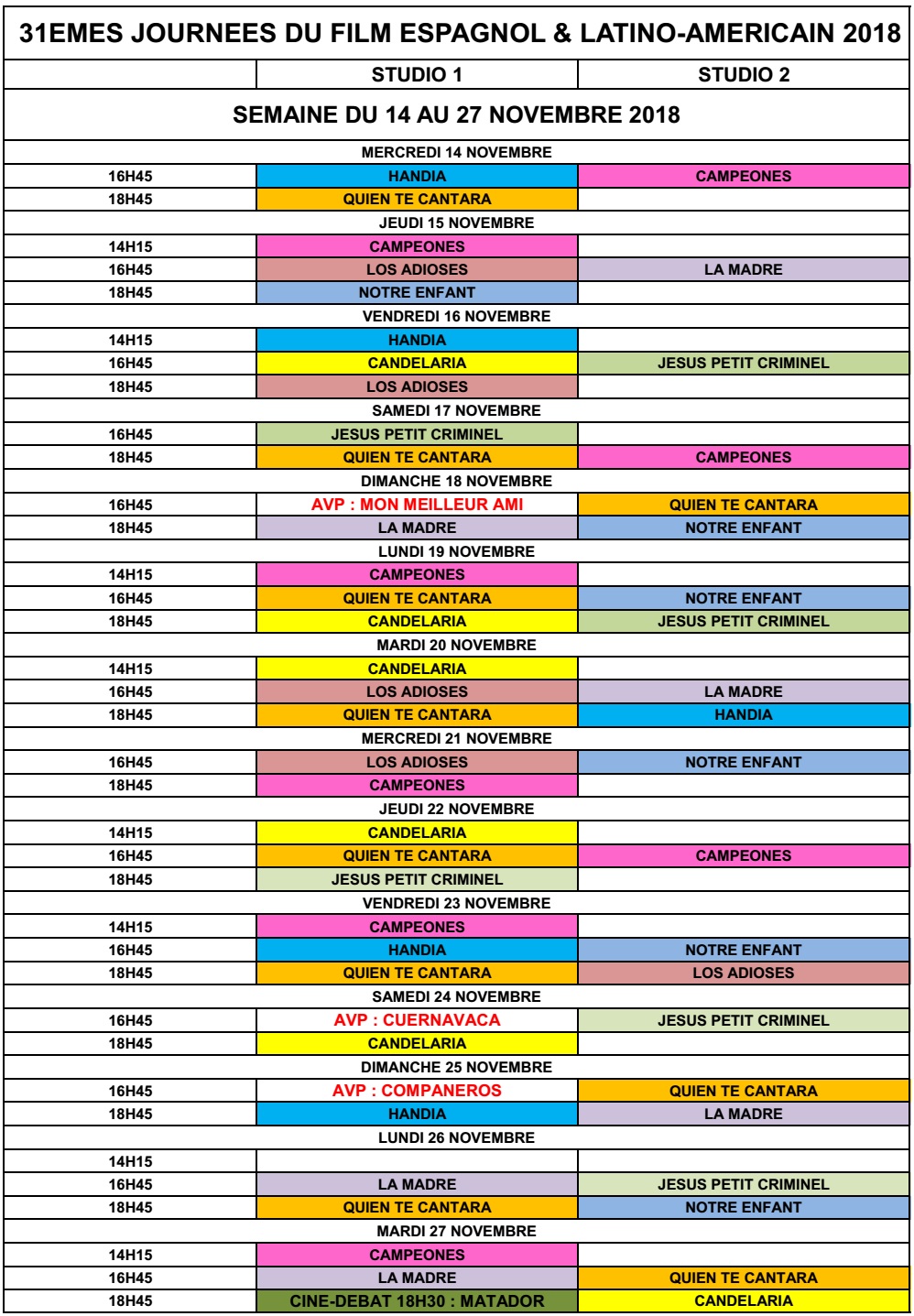 Les journées reprendront le mercredi 14 novembre au cinéma Le Studio à Bastia avec la projection, jusqu’au 27 novembre, d’une douzaine de films espagnols, cubains, mexicains, argentins… dont 3 avant-premières : « Companeros » de Alvaro Brechner, « Mon meilleur ami » de Martin Deus et « Cuernavaca » de Alejandro Andrade