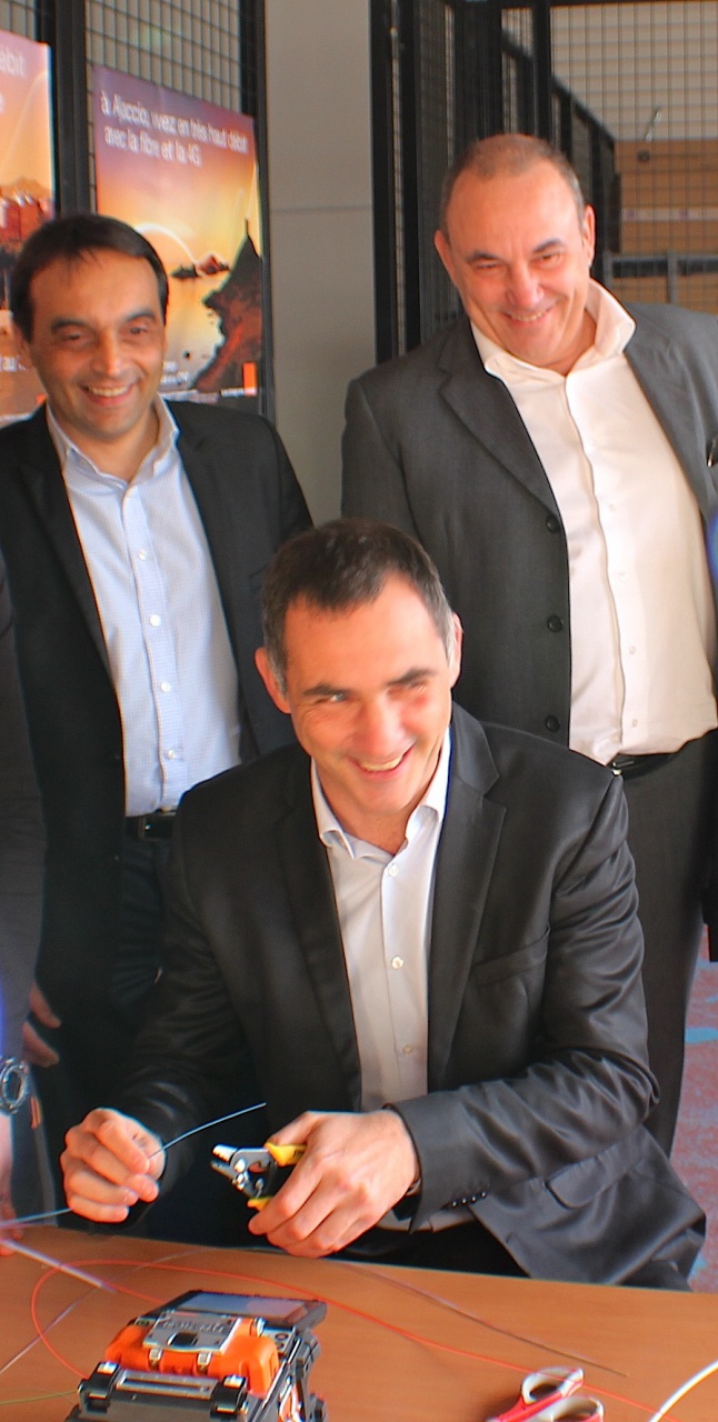 Après avoir coupé le ruban Orange Philippe Daumas a invité le maire de Bastia à assister à une démonstration des mille et une utilisations liées à l'avènement de la fibre…