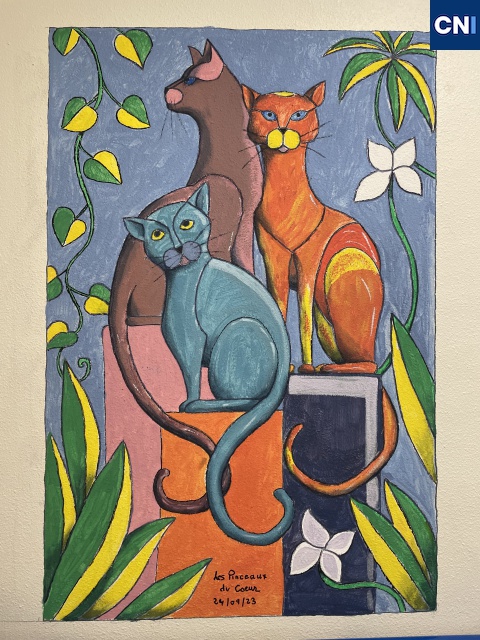 A ce beau projet est donc venue se greffer l’association « Les pinceaux du cœur » afin de compléter les œuvres réalisées dans les autres espaces de vie de l’USLD. « Notre association regroupe une centaine de personnes, artistes ou non » indique Marielou Albertini, artiste peintre. « Nous sommes des bénévoles prêts à donner de notre temps, de notre talent, de notre énergie pour venir donner de la joie aux enfants et adultes malades. Cette action à l’Ehpad USLD de Toga est notre10ème action. Il y a eu en amont une concertation avec le docteur Noël Sarradel qui a organisé une table ronde avec le personnel soignant pour discuter du projet et quoi réaliser. Nous sommes ensuite venus prendre les mesures. La réalisation des fresques murales a pris tout un week-end. Pour les non artistes, ceux qu’on appelle les petites mains, Antoine Asaro, Pierre Battesti et moi-même sommes venus la veille pour faire des dessins qui ont ensuite été peints par nos petites mains. On les a assistées, conseillées durant tout le week-end dans la réalisation de leur œuvres ».