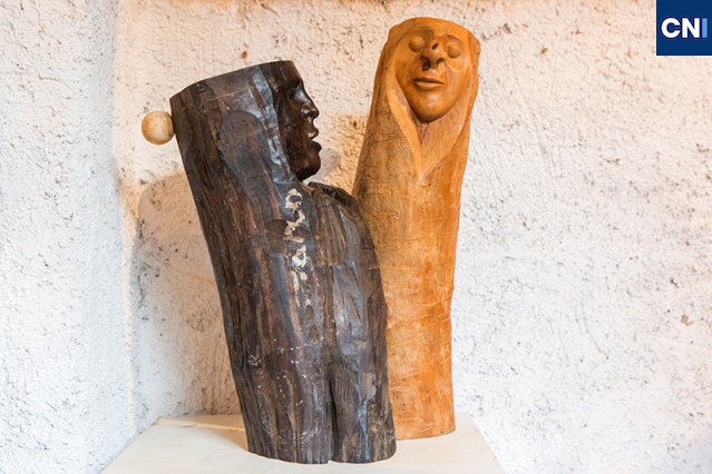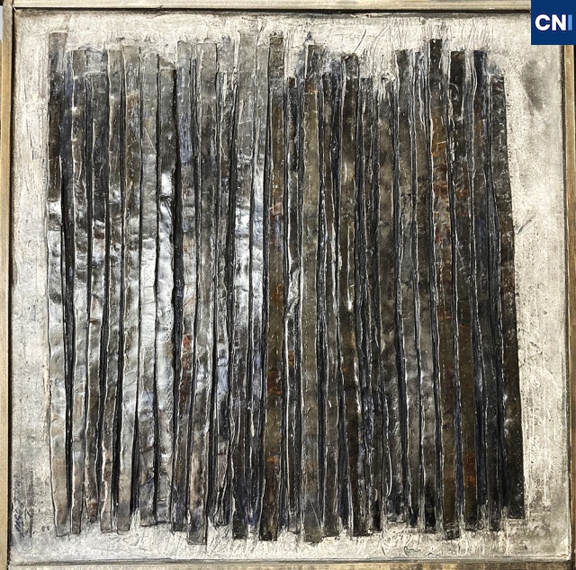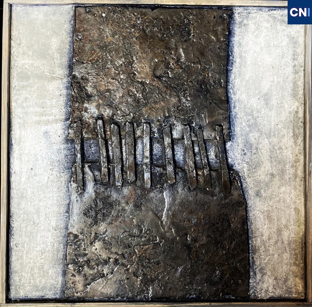 Dans une des salles de la Galerie de la place du marché de Bastia : José Pini. «Si vous êtes profane en sculpture, votre subconscient vous piquera en vous envoyant des images des créations de José Pini que vous avez vues toute votre vie en passant devant le port de Taverna par exemple » poursuit Denis Filippi «L’artiste de Penta-di-Casinca propose justement une exploration en profondeur. Plomb, colle et pigments se mêlent pour sceller ad vitam aeternam ses tableaux-relief, pour s’enraciner, pour s’ancrer dans son propre moi, dans sa propre histoire »