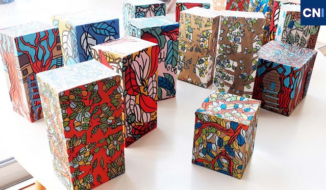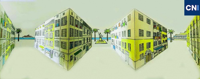 Denis Filippi nous convie ensuite à la découverte de Claudia Battesti. «Des racines, nos yeux vont se diriger vers le ciel avec les mégalopoles de Claudia Battesti. Le présent avec ses tours modernes, le passé avec ses immeubles anciens et son linge étendu aux fenêtres. Des palmiers, des statues, des échelles… L’exposition prend de la hauteur car l’artiste aime le mouvement et il se ressent dans la multitude de couleurs et son goût prononcé pour le rythme et les combinaisons architecturales. Nous pénétrons dans ce processus d’évolution, la vie bouge, l’homme se transforme. Les villes changent et bouillonnent d’énergie à l’instar de ces mégalopoles asiatiques que l’artiste aime tant ».
