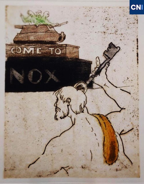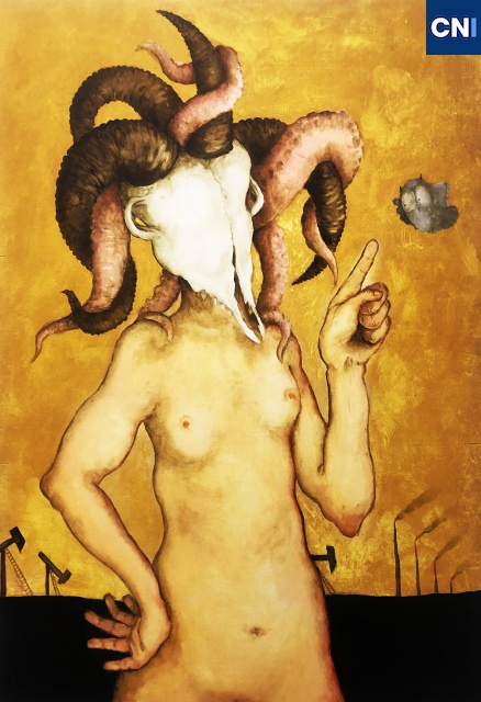 Notre 3ème artiste n’est autre que Toni Casalonga. « Avec Toni et sa Metabolia, il encore question d’énergie et de mutation » indique notre guide. «La métabole est cette transformation lente et progressive et l’artiste nous propose une actualisation des « Douze Travaux d’Hercule ». Véritable lien entre passé et présent, puisant dans les racines mythologiques, Toni Casalonga nous offre le fruit d’une évolution afin d’exprimer les difficultés et angoisses de la société moderne. Défis politiques et sociétaux essentiels on y découvre ses métamorphoses au travers de « bouclier anti-missile » ; « agriculture industrielle » ; « traitement des déchets » ou encore de « la finance ». Autant de problématiques livrées comme des messages à des fins de prises de conscience ».