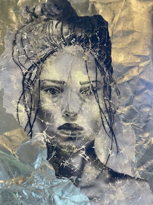 L’artiste, qui a obtenu une quatrième place à la XIVe Biennale de Florence en 2023 avec son œuvre Présence, joue ici sur l’interaction entre l’ombre et la lumière. Son travail, mêlant monochromie et feuilles d’or 24 carats, invite à une réflexion sur l’imperfection et la profondeur d’une œuvre en construction.