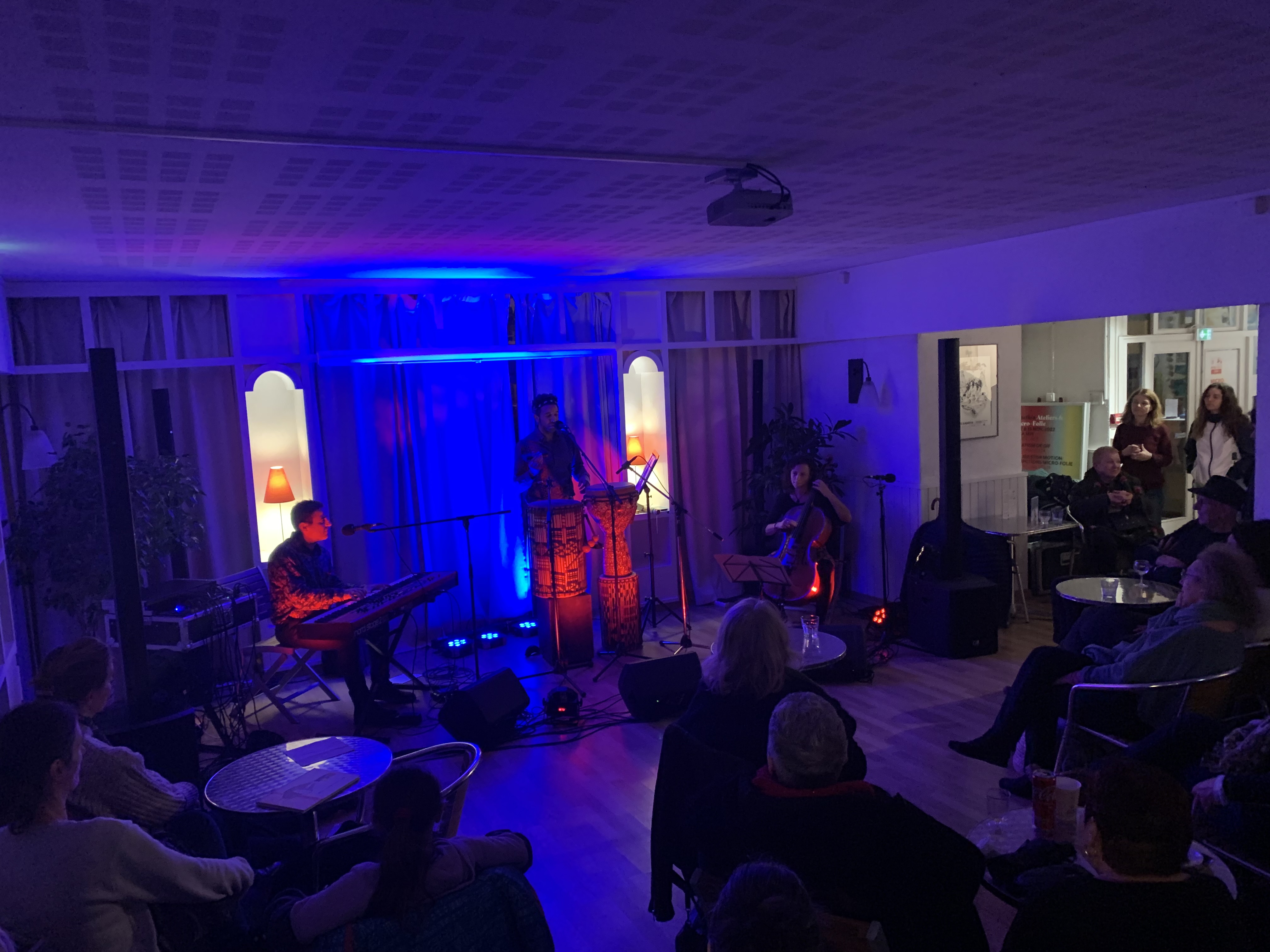 Sur scène ce jeudi soir Sintunia. Tout nouveau venu dans le paysage musical insulaire, Sintunia est un trio composé de Anne-Lise Herrera (violoncelle et chant), Gilles Mahinga N’Dekesse (chant et petites percussions) et Virgile Ferjoux (clavier).