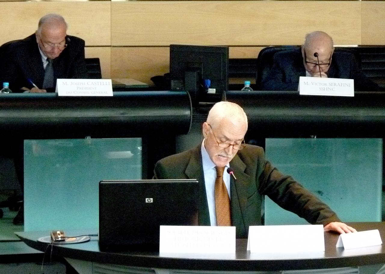 Jean-Baptiste Raffalli, conseiller général et conseiller municipal de Bastia en charge du patrimoine a remis au terme du colloque la médaile du Patrimoine de la ville de Bastia au Dottore Aldo Agosto, directeur des Archives de Gênes