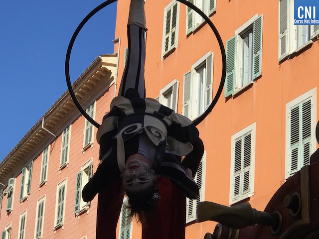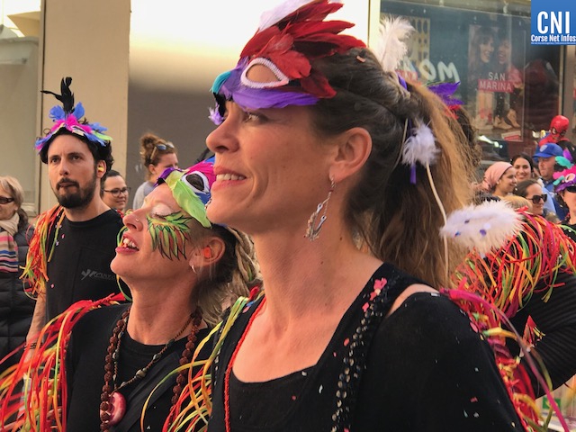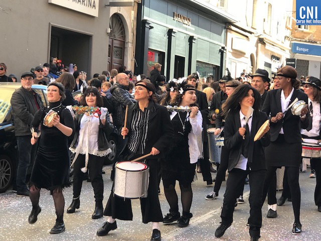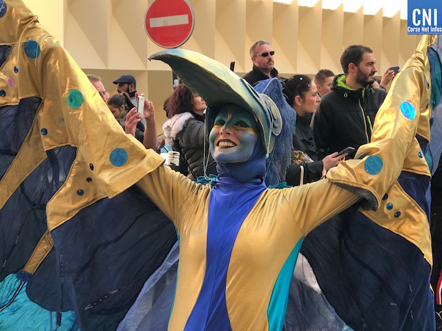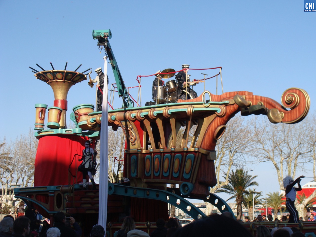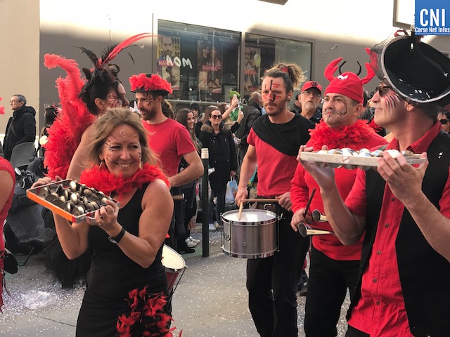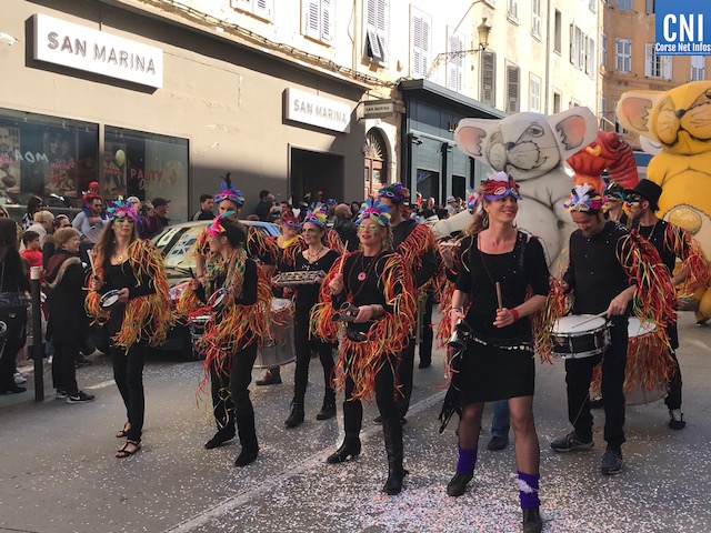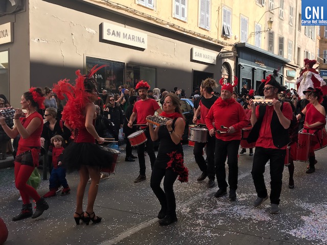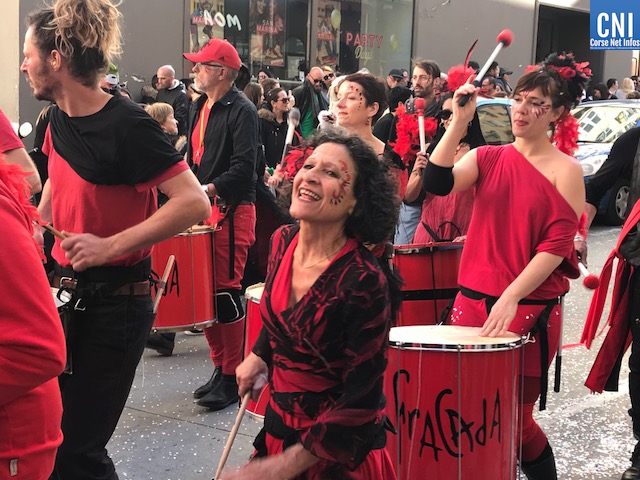 Le défilé était composé de deux chars de Nice, des cheers leaders du Corsican cheers de Furiani, ainsi que de nombreux percussionnistes des batucadas de la Banda Etnica, du Batuka’aja et de la Fracada.
