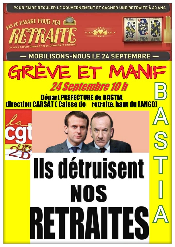 Mardi des manifestations sont prévues à Ajaccio et Bastia. Celle de Bastia partira de la préfecture à 10h pour remonter jusqu’à la direction de la caisse de retraite, tout en haut du boulevard du Fango.