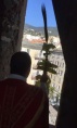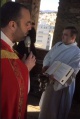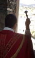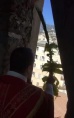 Après sa messe, il est monté en haut du clocher de l’église pour bénir les rameaux à la population.