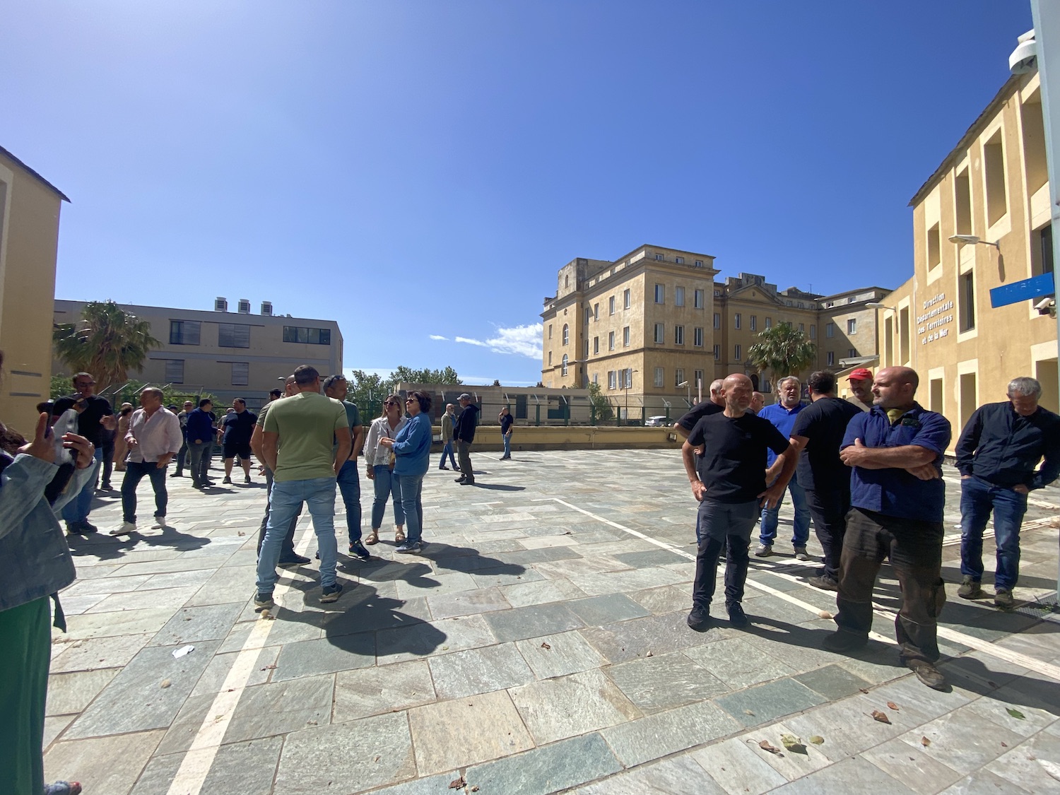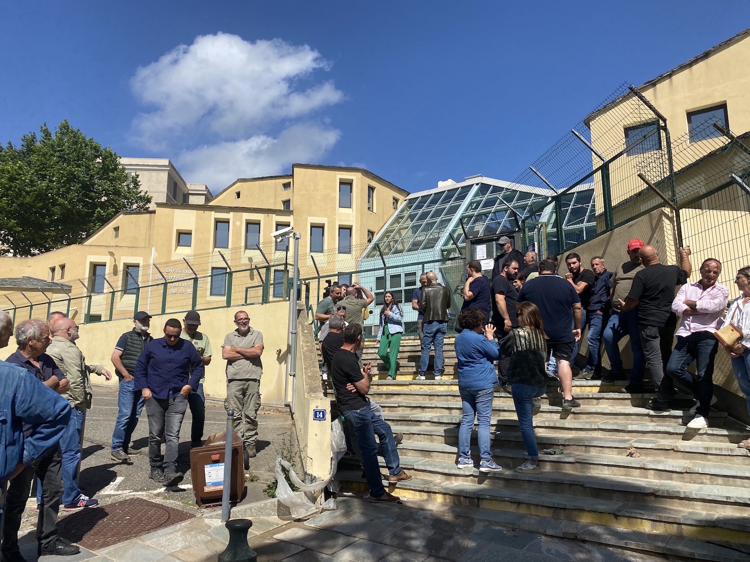 Plusieurs dizaines d’agriculteurs se sont réunis devant la Direction Départementale des Territoires et de la Mer, à Bastia, vendredi 31 mai 2024.
