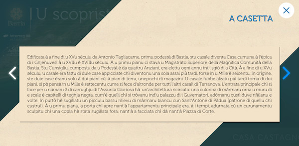 Depuis seulement deux jours, l'application mobile "Scopristoria" est disponible en corse, français et anglais sur smartphone. Elle permet des visites immersives de 43 hauts lieux et monuments du patrimoine bastiais. L'application a été conçue dans le cadre du projet européen GRITACCESS qui vise à créer des parcours accessibles au sein de l’espace Tyrrhénien. Ainsi, des monuments comme "la Casetta", dans le centre-ville, dont les images sont disponibles sur la plateforme, ont été filmés par des drones .