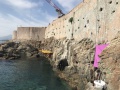 Le projet a donné du fil à retordre aux concepteurs du projet à cause des contraintes naturelles qu'étaient la roche et la mer. A ces endroits la houle peut atteindre 15 tonnes au mètre carré. Des consoles au dessus de la mer feront le lien avec les dalles sur roche.