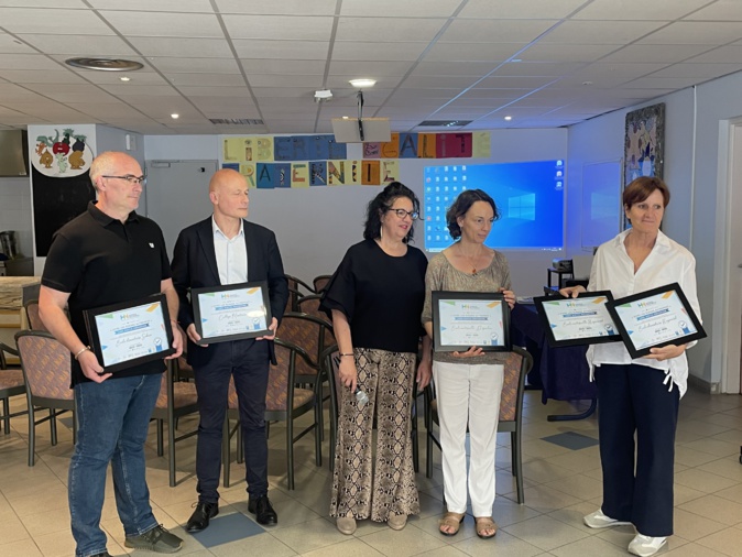 Des chefs d'établissement des écoles de Bastia ont reçu le label des mains de Michelle Blain, la directrice de l'association Horizon multimédia (au centre).