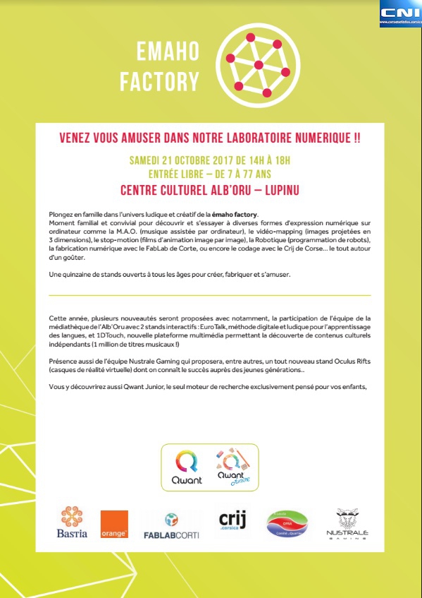 "Ainsi, après six années d’existence, la manifestation est devenue un véritable «laboratoire d’idées», vecteur de projets innovants, de collaborations nouvelles, et générateur de réseaux. Comme chaque année, un travail de médiation spécifique est effectué en faveur des publics des quartiers prioritaires, dans un souci permanent de simplifier l’accès à tous et réduire la fracture numérique sur le territoire. Pour cette 7ème édition, l’association a fait le choix de passer une étape supplémentaire dans sa démarche, en installant directement le coeur de la manifestation dans l’un des quartiers prioritaires de la ville, Lupinu, au Centre Culturel Alb’Oru" poursuit le président de Emaho.