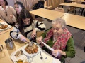 «Aujourd’hui, nous sommes venus vous offrir un peu de lumière, un peu de sourire. C’est bientôt Noël, ce temps de magie, de paix, de partage, d’amour et d’amis » déclarait la collégienne Clara dans son message d’accueil à la dizaine de résidents de St André. Un bel apéritif poétique préfigurant un menu de fête : Foie gras, saumon fumé, sauté de veau à la châtaigne, paupiettes de dinde aux girolles, pommes dauphines, poêlée de légumes. Bûches pâtissières et clémentines ne constituaient pas les seuls desserts puisque les élèves des ateliers artistiques offraient ensuite dans l’auditorium un spectacle créé pour la circonstance.