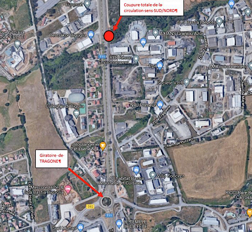 Suite aux dernières intempéries, la Collectivité de Corse doit effectuer en toute urgence la mise en sécurité d’un ouvrage hydraulique situé sur la 2x2 voies de la RT11, sur la commune de Biguglia.