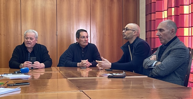 Le Syndicat professionnel des transporteurs de la Corse (SPTC) avec le Président Jean Marie Maurizi, Jacques Bindinelli (Corsefret), Jean-Michel Evangelista (SETEC) et Joseph Benzoni (COCCITRANS). Photo CNI.
