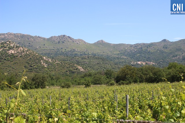 Après quelques mots de bienvenue, le viticulteur Balanins expliquait à ses hôtes qu'il avait pris la succession de son père; que le vignoble de 40 hectares est composé de plusieurs parcelles orientées au sud et se divise en deux partie? La première se trouve au nord du couvent, à proximité de Zilia et la seconde située à 10 km à l'ouest de Calenzana dans la Haute-Vallée de la Figarella; une dizaine de d'ouvriers et techniciens sont employé à l'année, 50% de la production part à l'étranger et le reste à la vente en Corse; les cépages sont très majoritairement des variétés traditionnelles Corse; Implantées au pied du Monte Grossu (point culminant 1950 mètres) et à quelques minutes du rivage, nos vignes bénéficient d’une influence climatique contrastée mer-montagne".