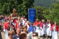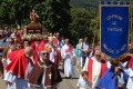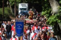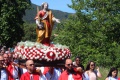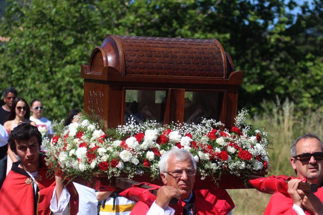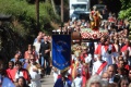 Les reliques et la statue de Sainte Restitude, décorées de fleurs rouge et blanche, étaient portées par les confrères.