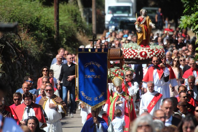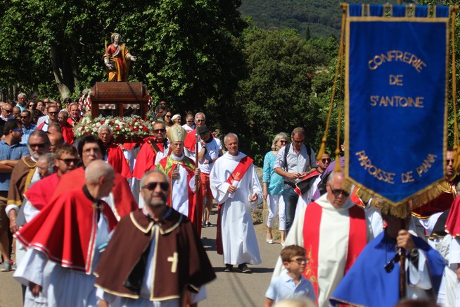 Mgr Olivier de Germay, évêque de l'église de Corse, entouré de l'abbé Ange-Michel Valery, archiprêtre de Calvi, responsable du secteur Balagne et de nombreux membres de l'église, invitait à la prière, avant la traditionnelle procession en direction de la petite chapelle de Sainte Restitude où l'Office devait être célébré en plein air.
