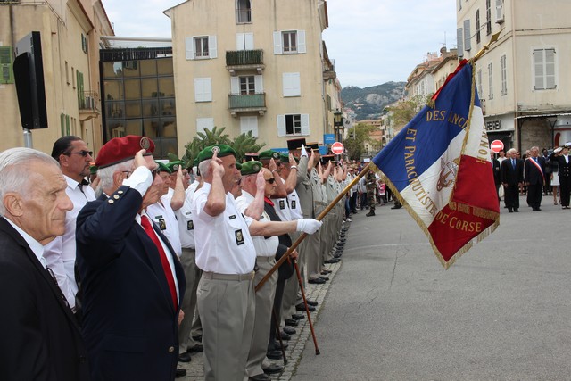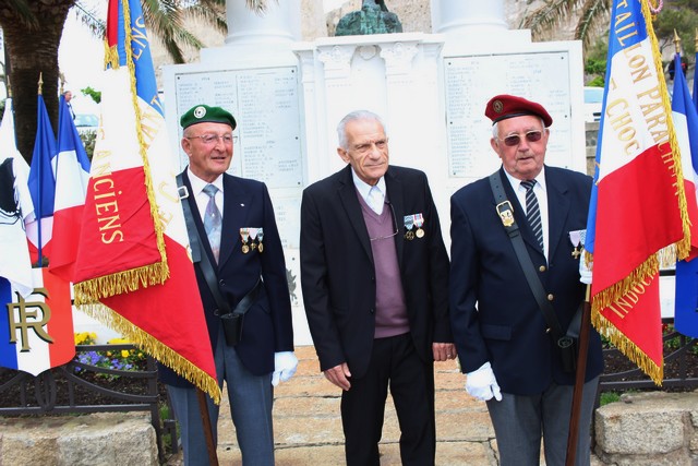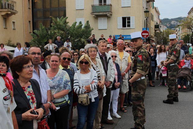 A Calvi, les autorités au premier rang desquelles Ange Santini, maire de Calvi, Anne Ballereau, sous-préfète de Calvi, Jean-Toussaint Guglielmacci, conseiller départemental de Calvi, le Colonel Jean-Michel Meunier, chef de corps du 2e REP, Claude Deceuninck, président des anciens combattants de Calvi-Galeria-Montegrossu arrivaient au monument aux Morts où étaient rassemblés un piquet d'honneur du 2e REP, une délégation d'officiers et sous-officiers du 2e REP, les représentants des associations et amicales d'anciens combattants avec leurs porte-drapeaux...