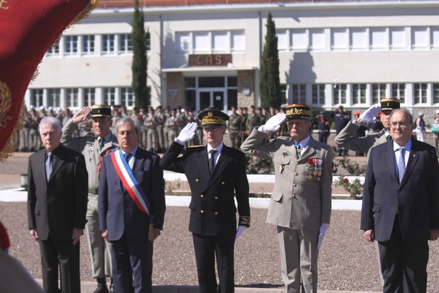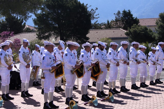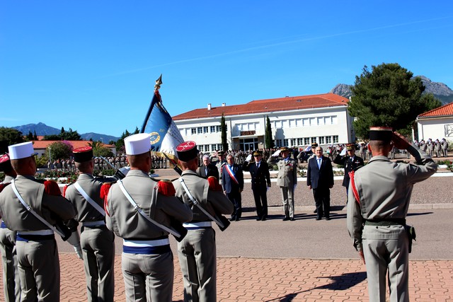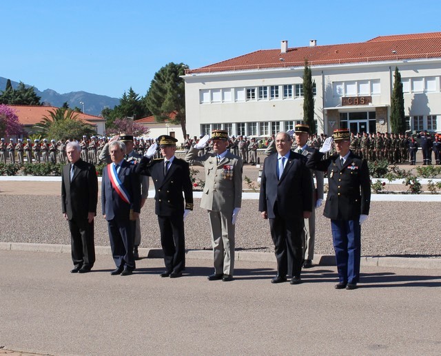 Dans la simplicité mais avec toute la rigueur que l'on connaît à ce Régiment d'élite, la prise d'armes débutait à 10 heures précises. Après que les troupes aient été passées en revue par le lieutenant-Colonel Olivier Le Segretain du Patis, commandant la base arrière du 2e REP et le lieutenant-colonel Bertrand Morel, officier adjoint supérieur, le général Alain Bouquin et les autorités parmi lesquelles Ange Santini, maire de Calvi, conseiller territorial, Paul Giacobbi, président de l'Exécutif de Corse, Jean-Toussaint Guglielmacci, conseiller départemental du canton de Calvi, le général Thierryr Cayet, commandant la Région de Gendarmerie de Corse saluaient le drapeau du Régiment. Puis, le Général passait à son tour les troupes en revue, avec à ses côtes le Lt Colonel Le Segretain du Patis.