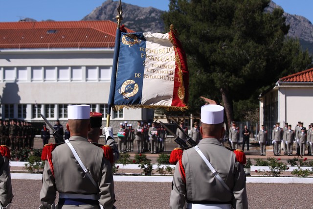 A l'issue de la cérémonie, les troupes du 2e REP et la fanfare du 27e BCA défilaient, avant le traditionnel cocktail servi sur invitation dans les jardins et une démonstration de sauts.