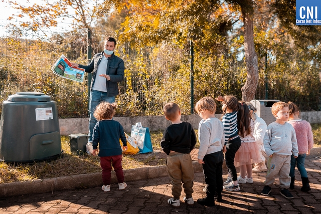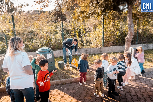Pour cette édition de la semaine européenne de réduction des déchets, qui traditionnellement se déroule la dernière semaine du mois de novembre, les ambassadeurs du tri sélectif de l'intercommunalité Calvi-Balagne et le SYVADEC de Corse ont ont installé à l'école maternelle Cardellu à Calvi un tout nouveau composteur partagé. " Cette Installation d’un composteur 280 litres dans une école maternelle vient en complément, de la formation « compostage » initialement prévue pour les instituteurs, une animation est également dispensée par les ambassadeurs du tri, Jean-Charles Villanova et Dominique Luciani, afin d’expliquer le compostage aux enfants âgés de 3 à 5 ans. Cette action contribuera à installer le neuvième composteur partagé du territoire" précise Sophie Dallest-Franchi, responsable du Service Tri Sélectif au sein de la Communauté de Communes Calvi - Balagne.