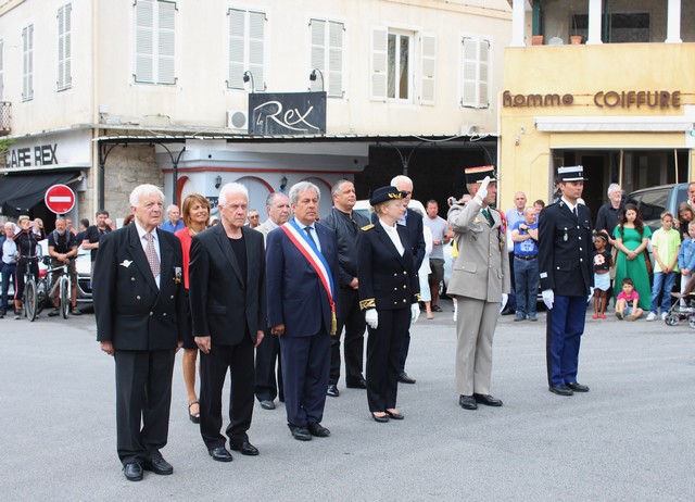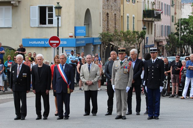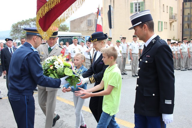 Suivait un premier dépôt de gerbe par le maire de Calvi , Ange Santini, Jean-Toussaint Guglielmacci, conseiller départemental Calvi-Balagne, Claude Deceunink, président des anciens combattants et un second par Anne Ballereau, sous-préfète de Calvi, colonel Jean-Michel Meunier, chef de corps du 2e REP, Cdt Olivier Burles, commandant la compagnie de Gendarmerie de Calvi-Balagne et deux enfants.