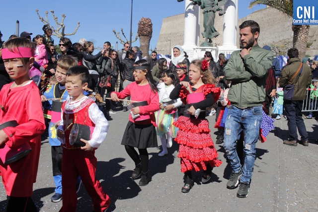 A 14h30, bien entouré par la Police Municipale et par la Gendarmerie de Calvi, mais aussi par les membres du corps enseignant et les organisateurs, tous prenaient place derrière le premier char pour une défilé sous une pluie de confettis et aux rythmes brésiliens de "La Fracada" toujours présente dans les grandes occasions.