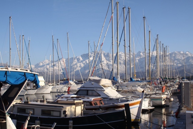 A l’entrée de la plage et sur le port de plaisance ou encore du quai Landry, le spectacle est encore plus beau avec la plage et la baie aux pieds de ces montagnes entièrement enneigées.